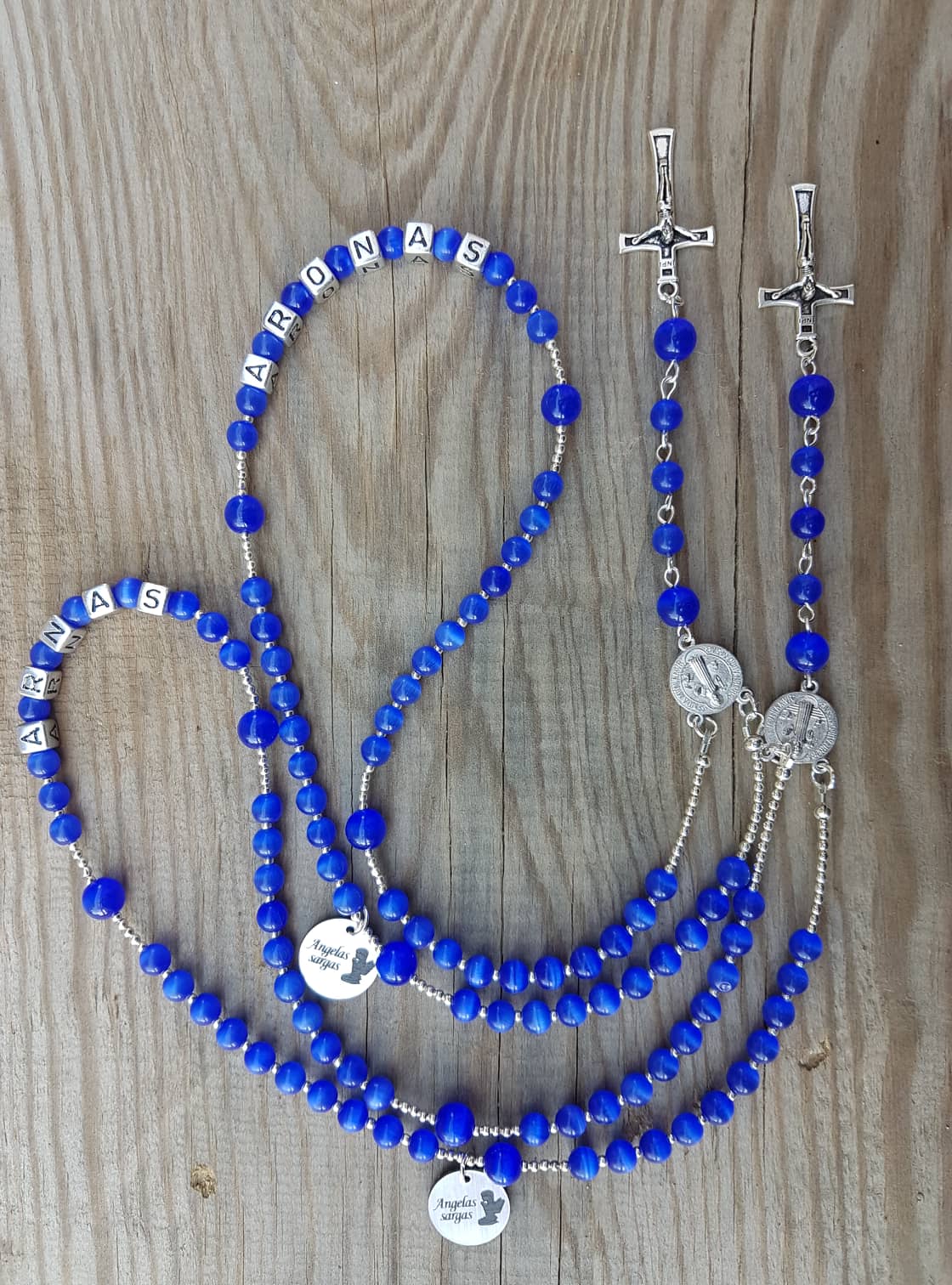 Tamsiai mėlynos katės akies karoliukų Rožančius.
