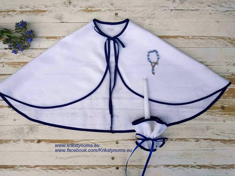 Perkant komplektuką ( Skraistę + žvakes papuošimą) . Rožančius rankytei tik 1 eur , vardinis tik 2eur
