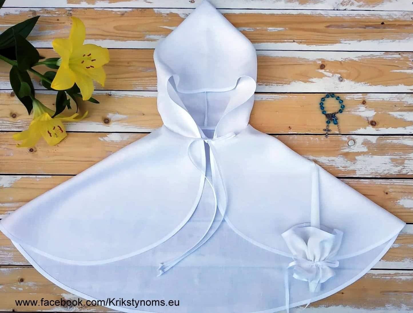 Perkant komplektuką ( Skraistę + žvakes papuošimą) . Rožančius rankytei tik 1 eur , vardinis tik 2eur.