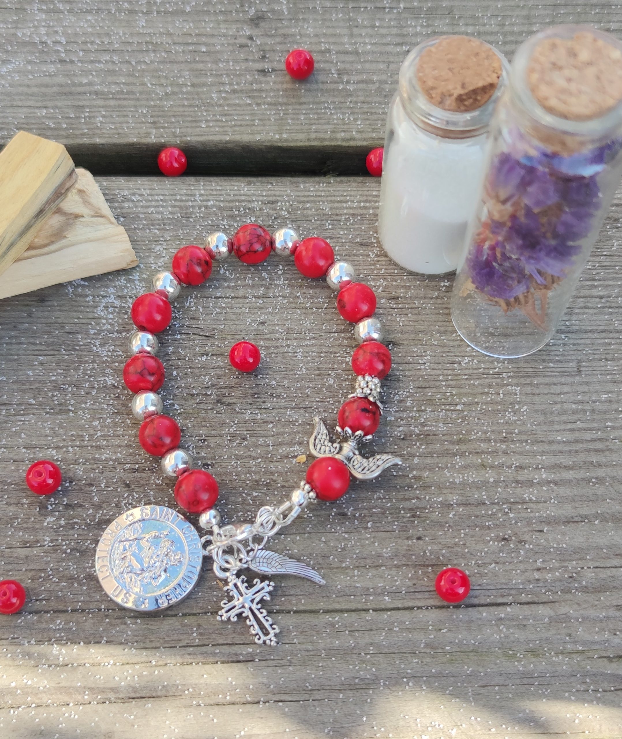 Raudonų karoliukų rožančius su šv. Kristoforo medalionu suteikia apsaugą ir stiprina meilę bei aistrą kelionėse. Šis gražus rožančius simbolizuoja drąsą ir dvasinę globą, užtikrindamas saugumą ir ramybę kiekviename žingsnyje.