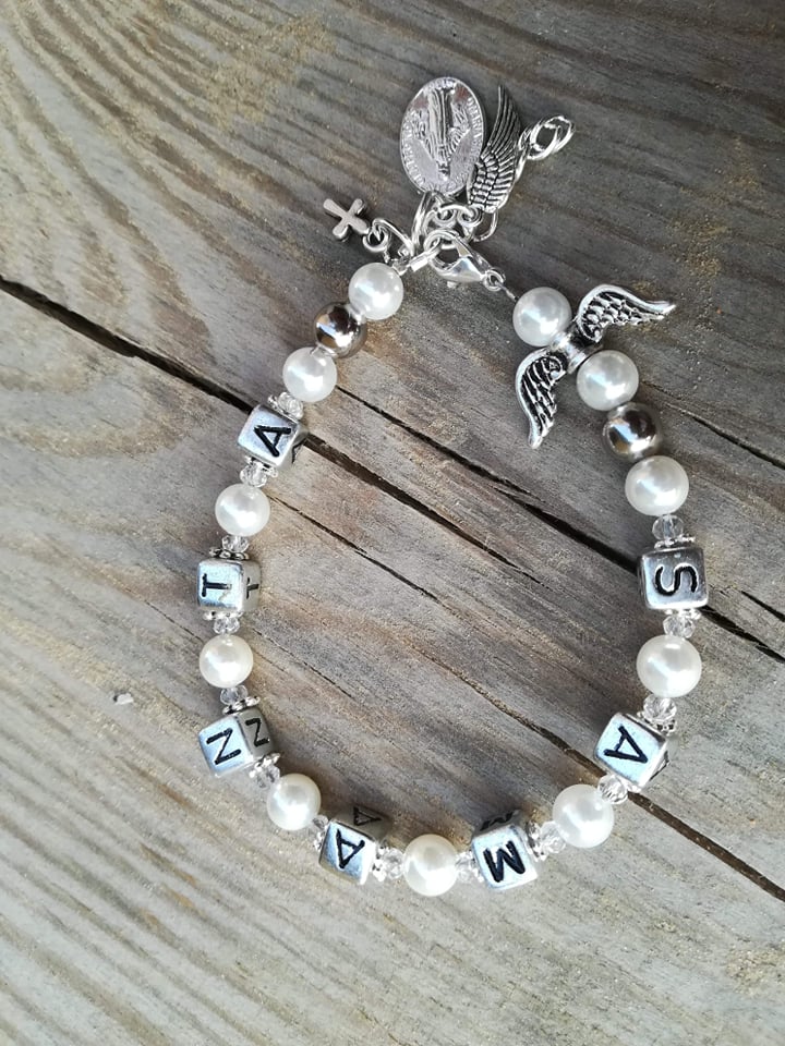 Perliukų apyrankė su Šv.Mergelės Marijos medalionu