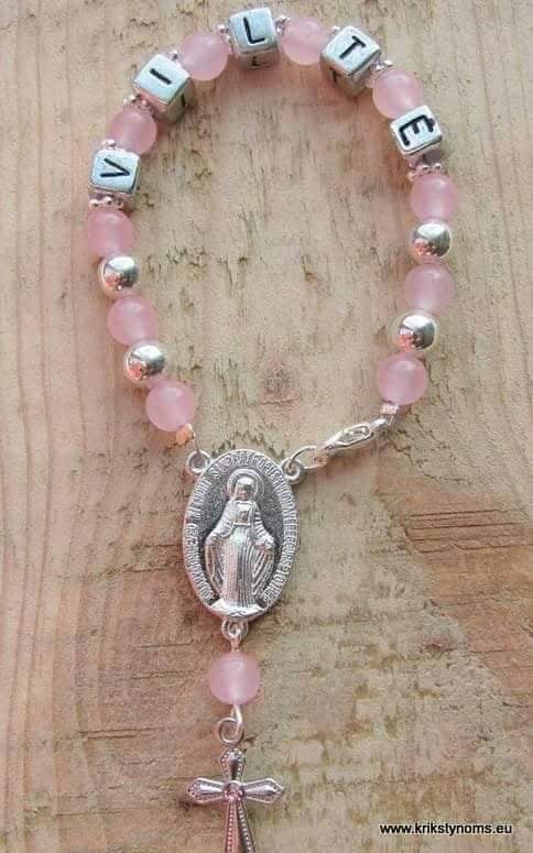 Apyrankė krikštynoms, rožinio kvarco karoliukais