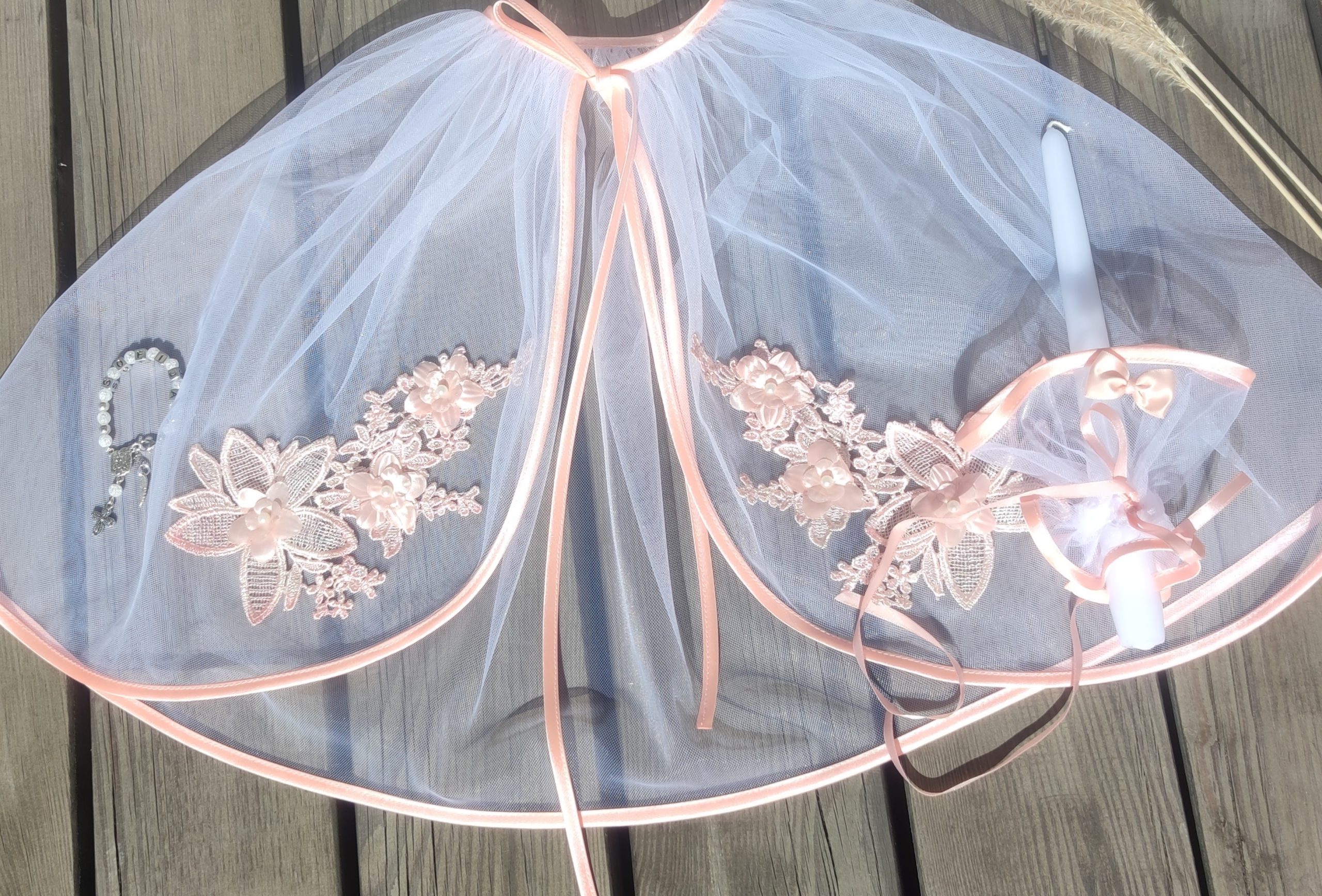Perkant komplektuką ( Skraistę + žvakes papuošimą) . Rožančius rankytei tik 1 eur , vardinis tik 2eur.