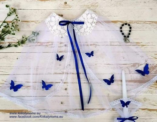 Perkant komplektuką ( Skraistę + žvakes papuošimą) . Rožančius rankytei tik 1 eur , vardinis tik 2eur.