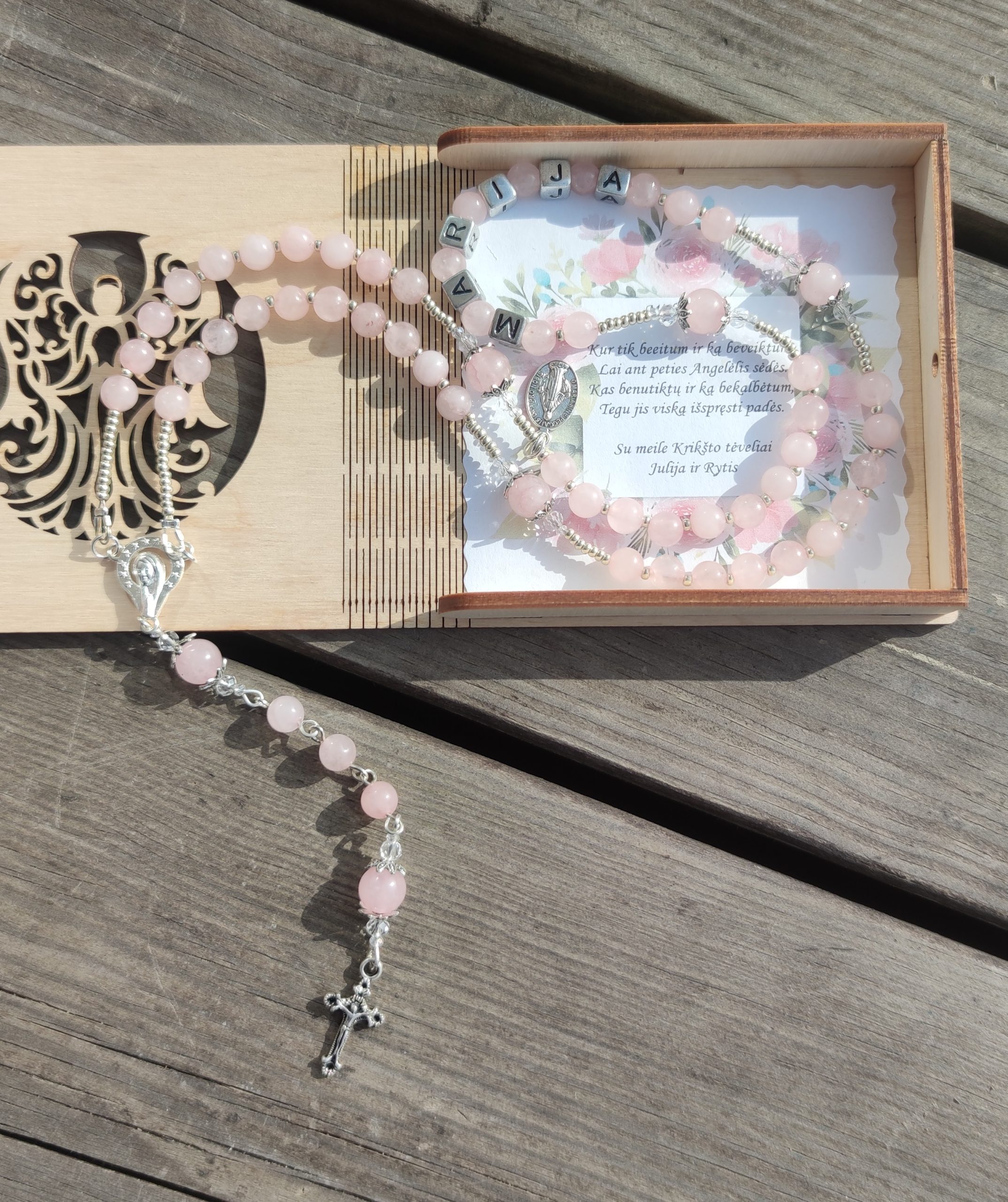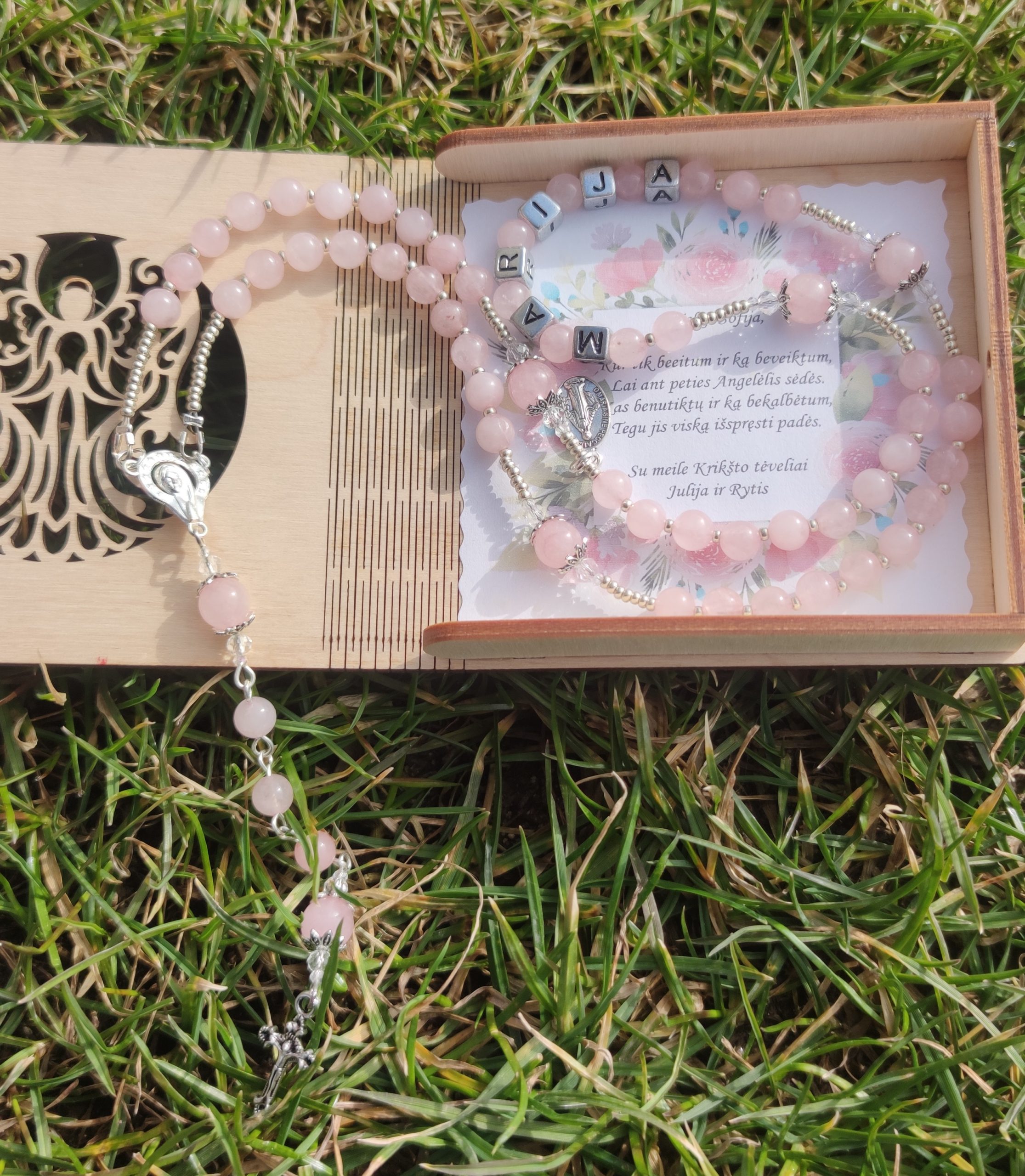 Kaina tik už rožančių, dėžutę su sveikinimu galima įsigyti už papildomą mokestį.